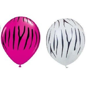 12 festive zebra print balloons- 6 hot pink and 6 white Inflate to approximately 12 inches each Zebra stripes all around Made in the USA by Qualatex 12 balloons You will receive 6 hot pink balloons with zebra stripes and 6 white balloons with zebra stripes Made by Qualatex in the USA Each infla Read More..